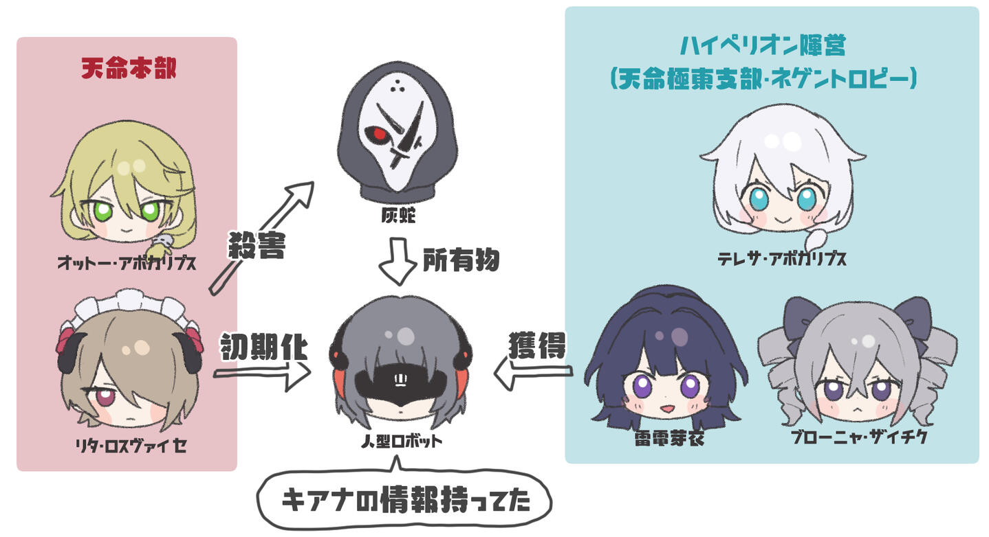 そのとき死んだはずの灰蛇から取引成立の連絡があり、その代価として人型ロボットを通じてハイペリオンの権限を乗っ取られてしまった