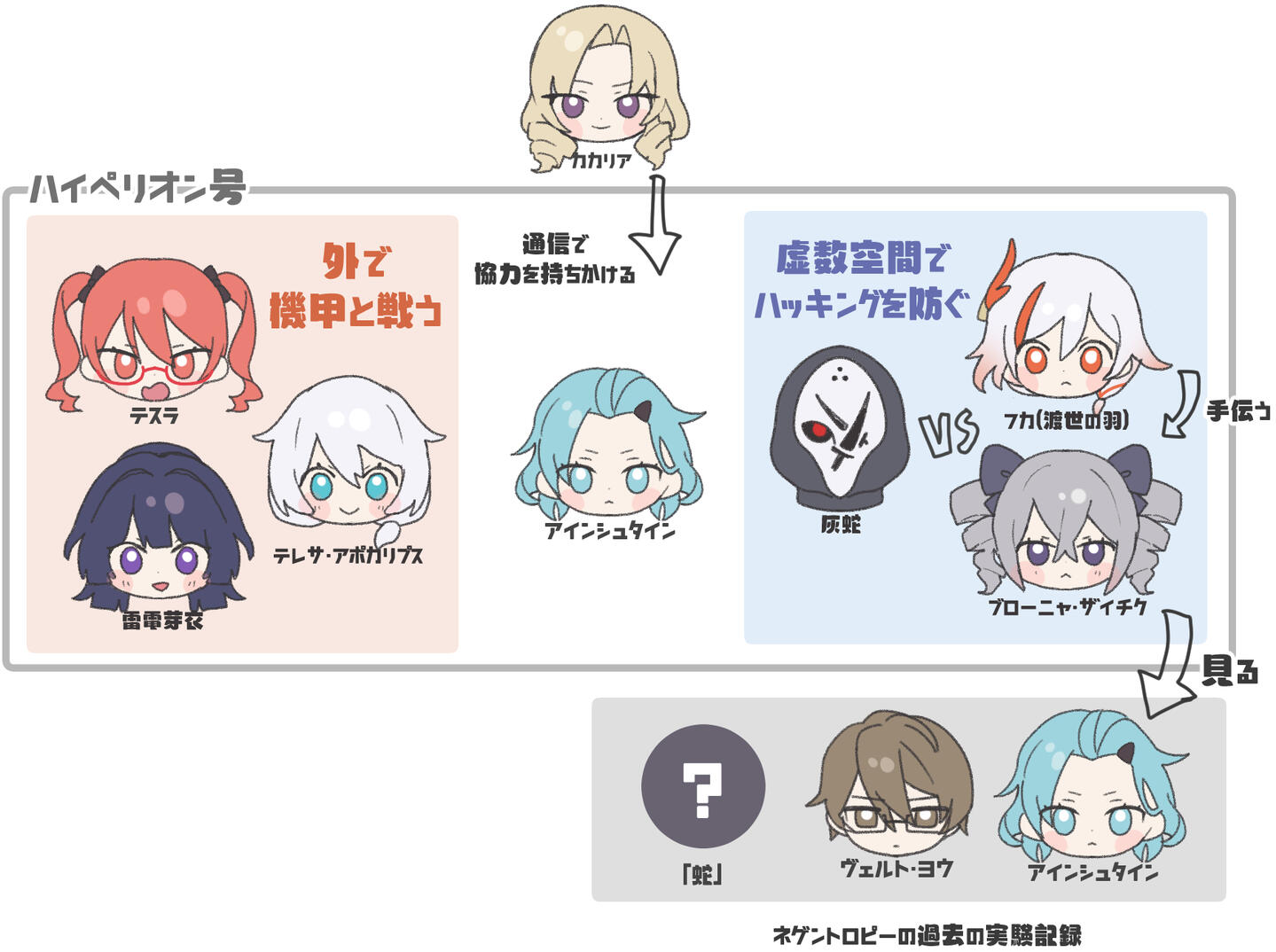 名前と、誰が所属しているのかを覚えておくとストーリーを理解しやすいです