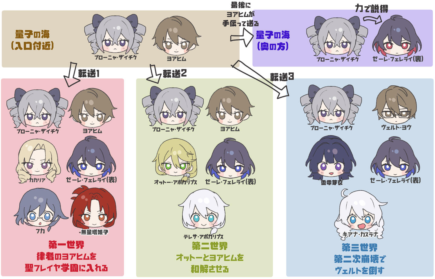 ストーリーを読んでいけばそのうち少しずつわかると思います…多分)難しい例え話がありましたが、量子の海はたくさんのパラレルワールドの一部が色々混ざっている不思議な空間です(のび太の机の引き出しが近いイメージかも)